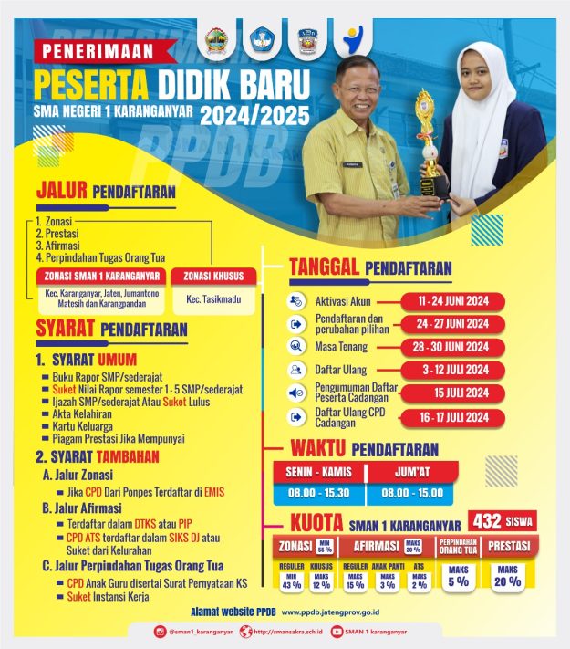 Smansakra – SMAN 1 Karanganyar Kabupaten Karanganyar memperoleh Juara Umum Chreaphoria#15, Chreaphoria merupakan ajang kreativitas perlombaan Palang Merah Remaja se-Jawa Tengah yang rutin diselenggarakan setiap tahun oleh SMA N 1 Surakarta. Terdapat 5 kategori lomba yaitu Lomba Cerdas Cermat (LCC), Pertolongan Pertama (PP), Pendidikan Remaja Sebaya (PRS), Perawatan Keluarga (PK), dan Poster. Pada tahun 2024…