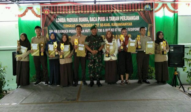 Siswa-siswi SMAN 1 Karanganyar mengikuti lomba paduan suara, baca puisi dan tari perjuangan yang diadakan oleh Kodim Karanganyar dalam rangka memperingati HUT RI ke-72 Th. SMAN 1 Karanganyar meraih juara 1 lomba paduan suara, juara 1 baca puisi dan juara 3 lomba tari perjuangan. Kepala Staf Kodim 0727/Karanganyar Mayor Inf Mantang Tutup Lomba Paduan Suara,…